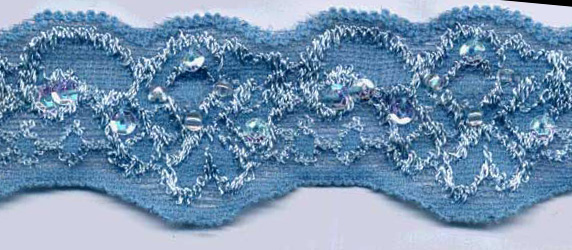 1+1/8" Stretch Lace Scallop-Antique Blue Lace With Sequins And Beads