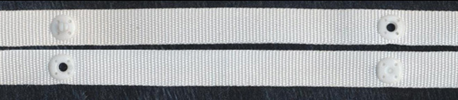 1/4" X X 3.75" Cut Grosgrain Bra Strap Tabs With Plastic Snaps-White (Snaps 2 3/8" Spaced)